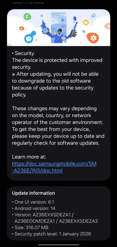 Der Patch bringt laut Samsung die aktuellen Android‑Sicherheitsverbesserungen für Januar mit, schließt mehrere Schwachstellen im System und optimiert die allgemeine Stabilität. Funktionsseitig ist nichts Neues bekannt, da es sich um ein klassisches Sicherheitsupdate handelt, das vor allem unter der Haube arbeitet.