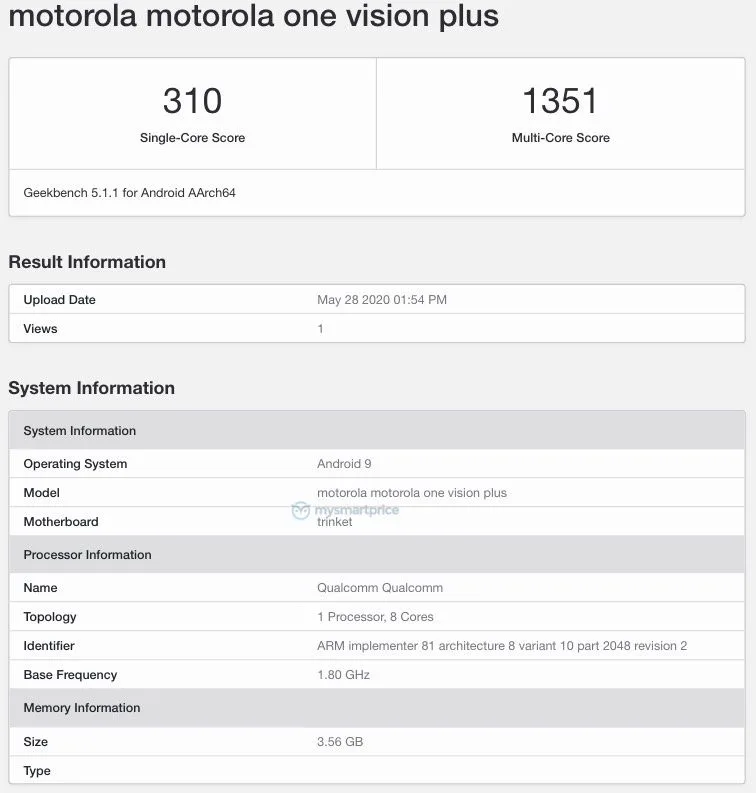 Motorola One Vision – eher enttäuschende Werte im Leistungstest – Das Motorola One Vision ist im Geekbench Leistungstest aufgetaucht und daher kann man bereits die ersten Werte der neuen Modelle ablesen. Die Performance ist dabei eher enttäuschen, im Single Core Test erreichen die Modelle gerade 310 Punkte und bei den Multi Core Tests 1350 Punkte. Die Geräte liegen damit etwa bei einem Drittel der Leistung von Topmodellen. Preislich gesehen sind die neuen Smartphones natürlich deutlich billiger und daher kann man auch keine Top-Leistungen erwarten, aber etwas höhere Werte wären dennoch zu wünschen gewesen. Die geräte sind beispielsweise kaum schneller als die One Vision aus dem letzten Jahr.