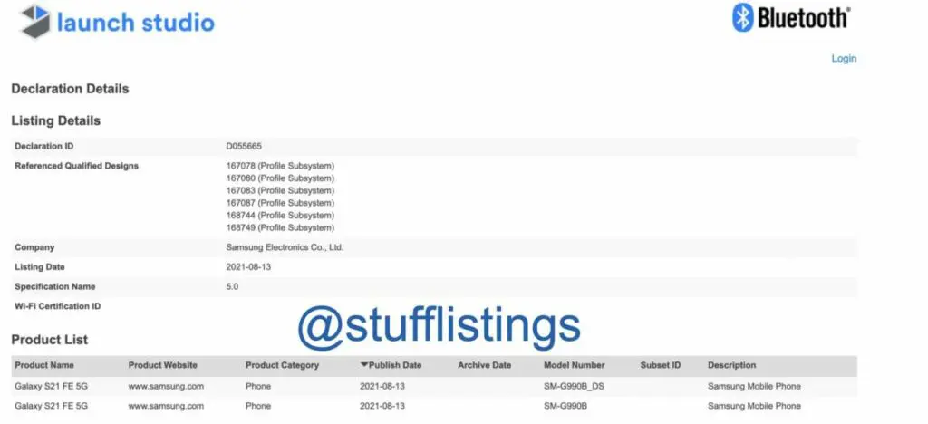 Samsung Galaxy S21 FE – Bluetooth SIG Zertifizierung erfolgreich