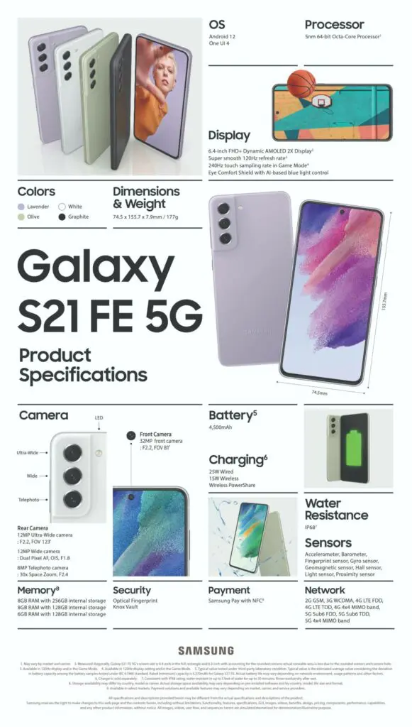 Die technischen Daten der neuen Galaxy S21 FE Modelle