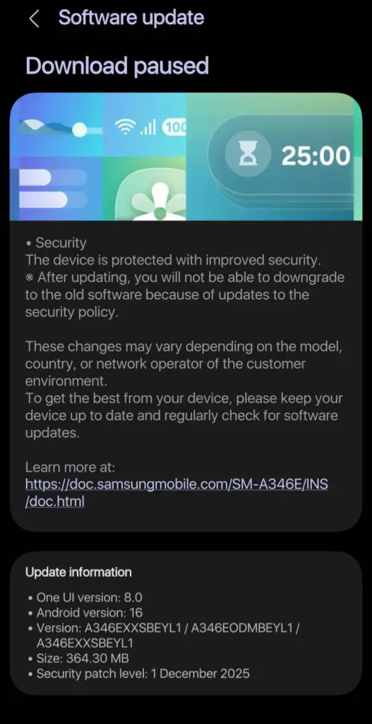Die Galaxy‑A34‑Reihe erhält nun auch international das Dezember‑Update. Mit den Build‑Versionen A346EXXSBEYL1, A346EODMBEYL1 und A346EXXSBEYL1 verteilt Samsung die aktuelle Firmware, die vor allem sicherheitsrelevante Verbesserungen und Stabilitätsoptimierungen mitbringt. Nutzer können das Update wie gewohnt über die Systemeinstellungen abrufen.