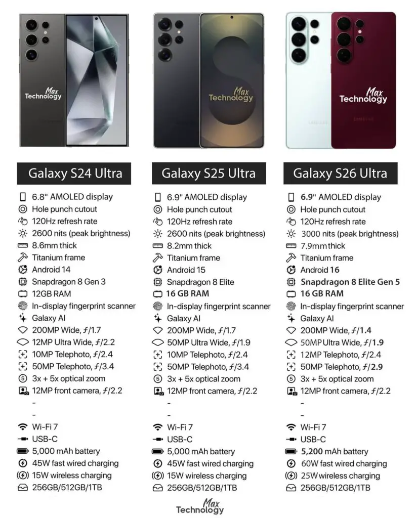 - Ultraweitwinkel- und Super-Telekamera: Es wird spekuliert, dass das Galaxy S26 Ultra auch eine 50-Megapixel-Ultraweitwinkelkamera und eine zusätzliche Super-Telekamera haben könnte.