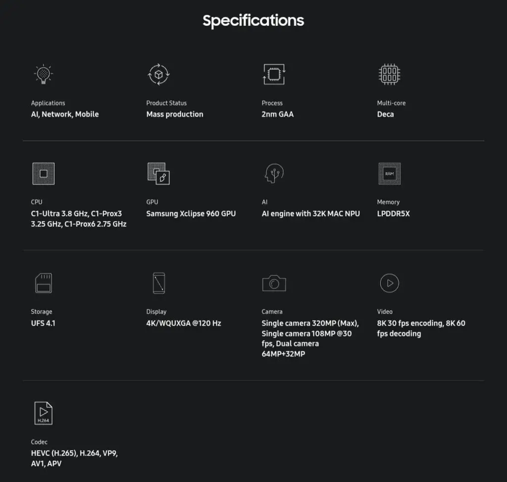 | Fertigungsverfahren | 2nm GAA (Gate-All-Around) – Samsung Foundry (SF2) |