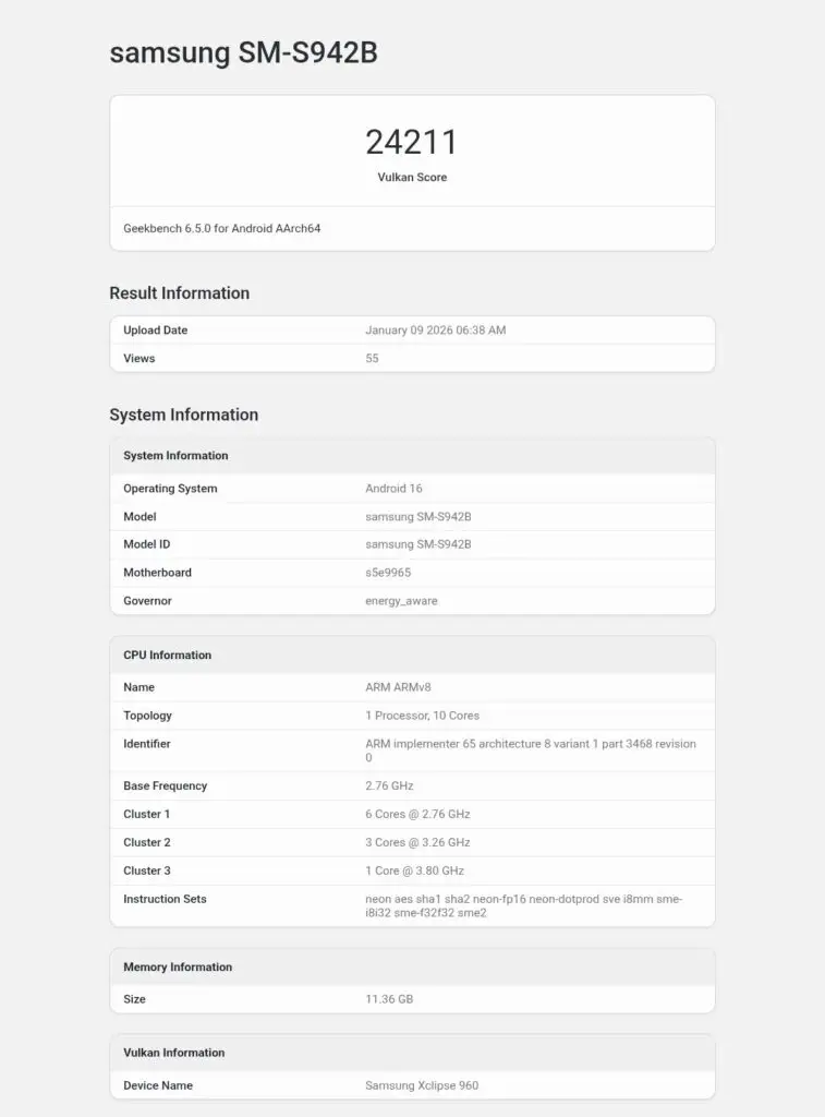 Es gibt die ersten Leistungstest der Galaxy S26 Modelle mit Exynos Prozessor auf Geekbench und das Update der Chipgenerationen hat sich offensichtlich richtig gelohnt. Während das S25 noch im 3nm-Verfahren gefertigt wurde, ist das S26 das erste Smartphone mit einem 2nm-Chip. Vor allem die Grafikleistung scheint sich damit fast zu verdoppeln, wenn die aktuellen Zahlen so auch in der Praxis möglich sind: