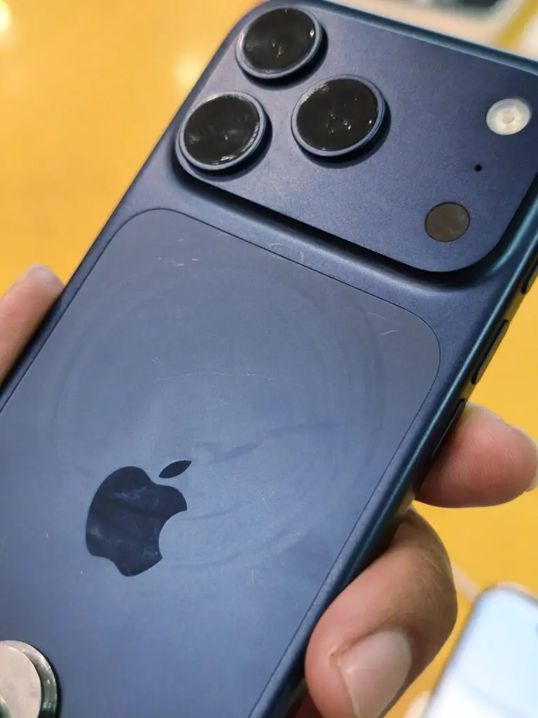 Apple verwendet beim iPhone 17 Pro anodisiertes Aluminium der Serie 7000, das zwar robust ist, aber eine empfindliche Farbschicht besitzt. Die Rückseite ist nur teilweise mit Ceramic Shield geschützt – etwa zwei Drittel der Fläche. Die große Kamera bleibt bei vielen Hüllen ungeschützt. Selbst Zubehör wie MagSafe-Ladegeräte kann sichtbare Abnutzungsspuren hinterlassen.