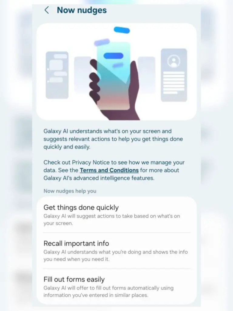 UPDATE Mit One UI 8.5 führt Samsung ein neues Feature namens „Now Nudges“ ein, das die Galaxy‑AI noch stärker in den Alltag integriert. Die Funktion erkennt, was gerade auf dem Bildschirm angezeigt wird, und schlägt passende Aktionen vor, die die Produktivität steigern sollen. So können Nutzer direkt kontextbezogene Empfehlungen erhalten, ohne selbst nach der nächsten Option suchen zu müssen. Damit ähnelt „Now Nudges“ dem von Google bekannten Magic Cue, das ebenfalls auf intelligente Hinweise setzt, um Arbeitsabläufe zu vereinfachen und schneller zum Ziel zu führen.