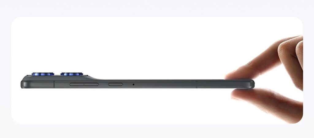 Das Gerät misst 5,99 mm in der Tiefe und wiegt 159 g. Es verfügt über ein 6,7 Zoll großes P-OLED-Display mit einer Auflösung von 1220 × 2712 Pixeln, einer Bildwiederholrate von 120 Hz und einer maximalen Helligkeit von 4.500 Nits. Die Displayfläche ist durch Gorilla Glass 7i geschützt und nimmt über 91 % der Vorderseite ein.