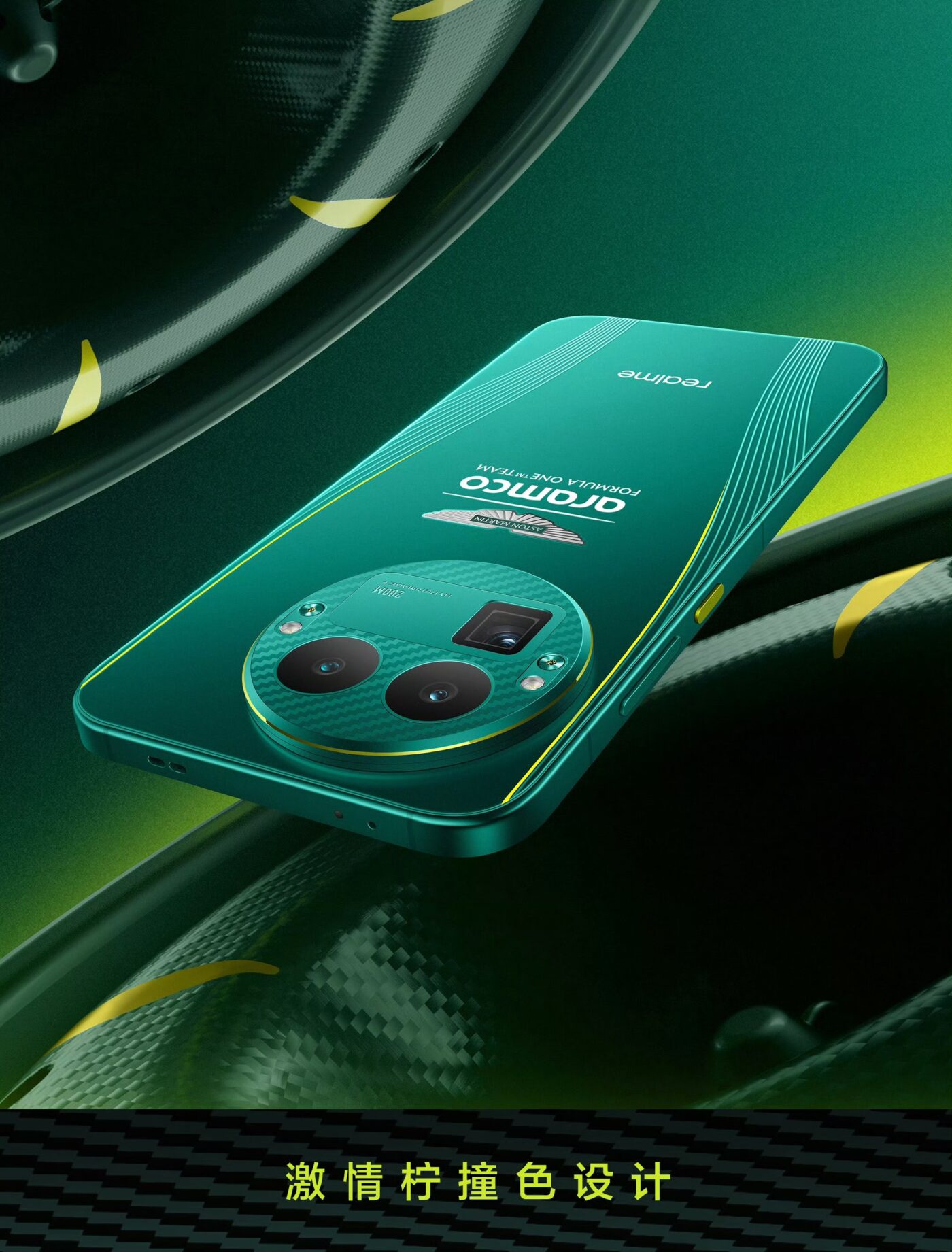 Die Aston Martin Edition des GT8 Pro kommt in einem edlen „Aston Martin Green“ mit silbernem Flügel-Logo auf der Rückseite – eine Hommage an das Formel-1-Team der britischen Marke. Die Rückseite ziert eine aerodynamisch inspirierte Dual-Wing-Struktur, die nicht nur optisch beeindruckt, sondern auch die Rennsport-DNA des Geräts unterstreicht. Realme integriert zudem ein angepasstes Benutzerinterface, das visuell auf das Motorsport-Thema abgestimmt ist.
