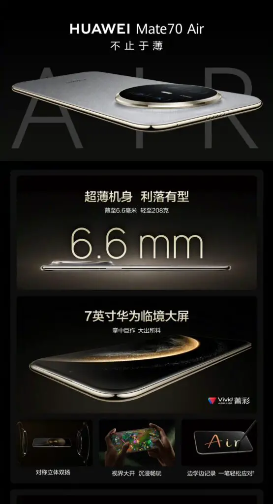 Mit dem Mate 70 Air zeigt Huawei, dass ultradünne Smartphones nicht auf Leistung verzichten müssen. Das Gerät kombiniert ein elegantes Design mit starker Hardware und innovativen Funktionen – und positioniert sich damit als ernstzunehmender Konkurrent zu Apples iPhone Air und anderen High-End-Modellen.
