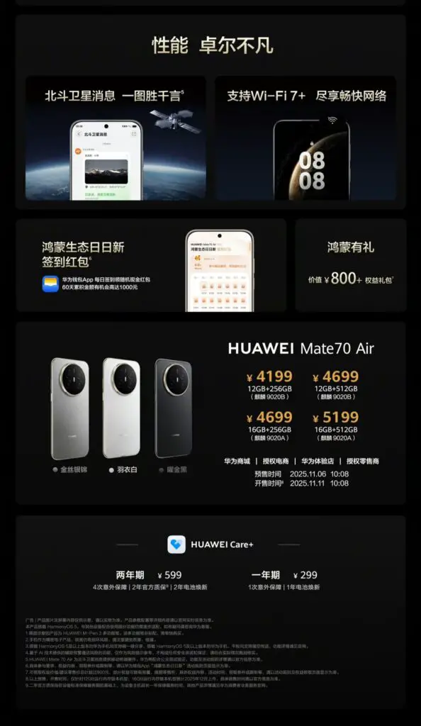 Huawei bietet das Mate 70 Air in drei edlen Farbvarianten an: