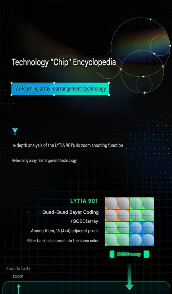 Ein direkter Nutzniesser dieser KI-gestützten Pixel-Neuordnung ist der 4x Lossless Zoom. Da der Sensor über eine sehr hohe native Auflösung verfügt, nutzt das System einen zentralen Ausschnitt (Crop) des Sensors für Zoom-Aufnahmen. Anstatt das Bild einfach nur digital zu vergrößern – was normalerweise zu Unschärfe führt – wendet die AI Learning Array Rearrangement Technology ihre Rekonstruktionsalgorithmen auf diesen Bereich an.