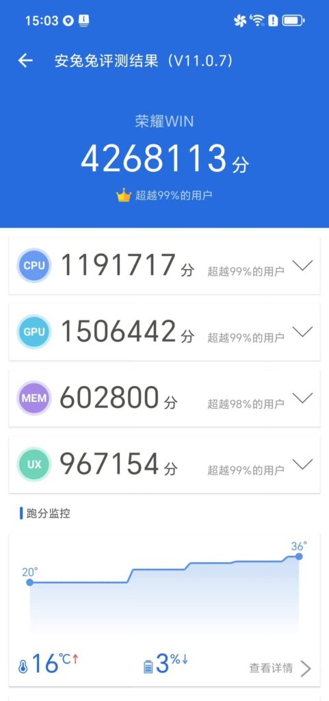 Die neue Technik zeigt in den ersten Leistungstests auch bereits, was sie kann. Der Honor WIN setzt auf den neuen Snapdragon 8 Elite Gen5, Qualcomms aktuell stärksten mobilen Chip. Mit über 4,26 Millionen Punkten im AnTuTu‑Test positioniert sich das Modell klar im Spitzenfeld der aktuellen Performance‑Klasse.