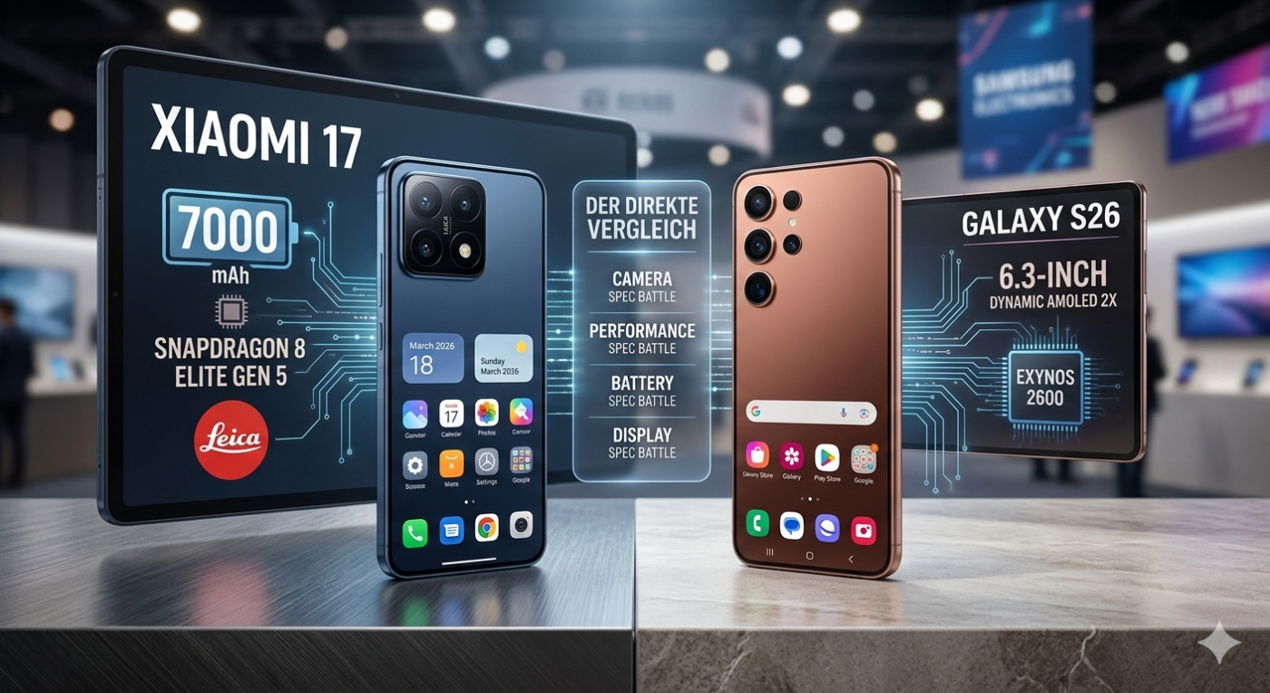 Von der Hardware-Front gibt es Neues zu berichten: Während Samsung beim Galaxy S26 auf Evolution und KI-Integration setzt, schlägt Xiaomi mit dem Modell 17 einen Weg ein, der vor allem Spec-Enthusiasten hellhörig macht. Wir haben uns die technischen Daten der beiden Kontrahenten angesehen, die unterschiedlicher kaum sein könnten.