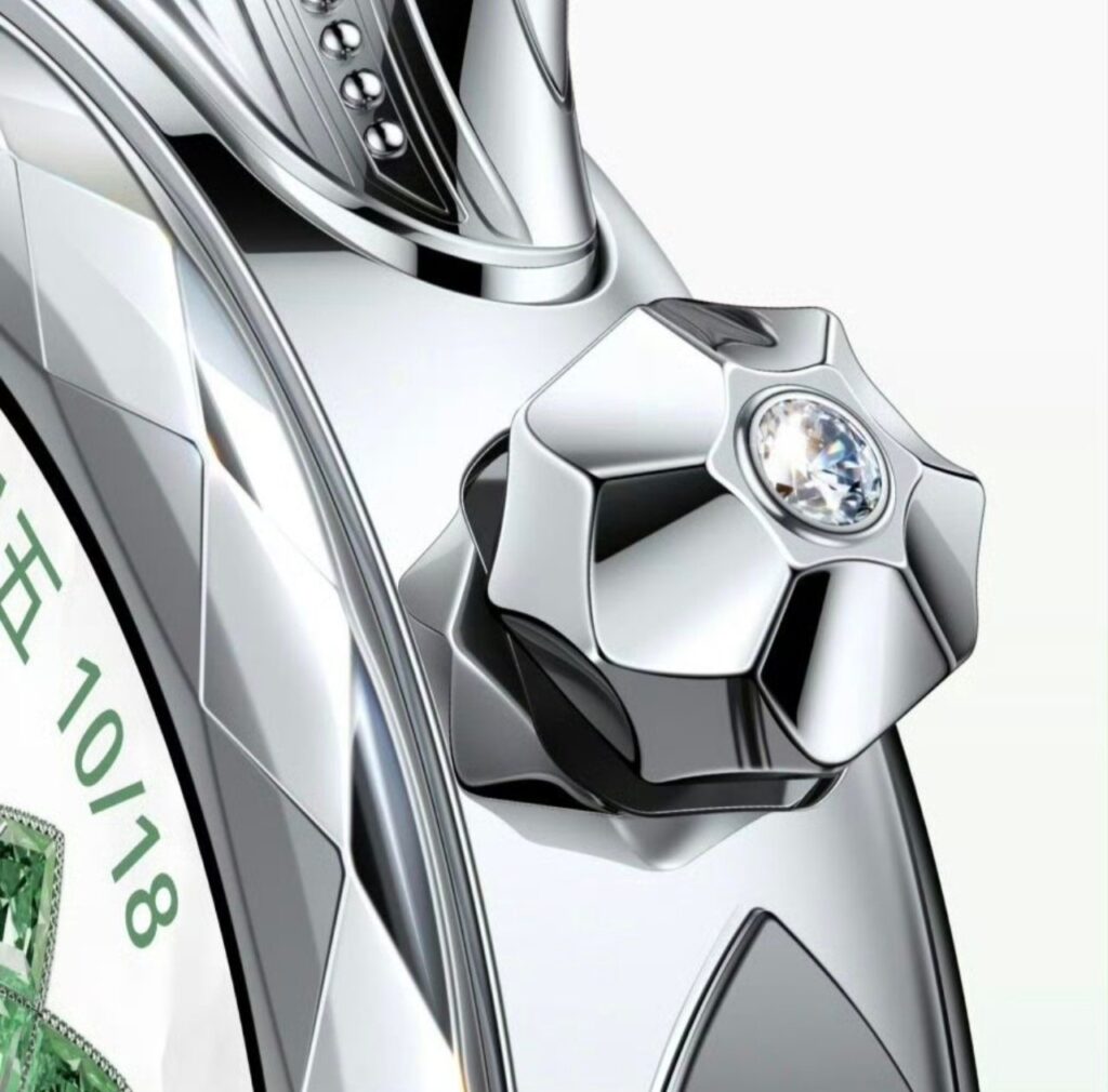 Die Blooming Edition hebt das Konzept der „Luxus-Smartwatch“ auf ein neues Level. Während die bisherigen Modelle auf robustes Zirkonium-Liquid-Metal oder 18-Karat-Gold-Inlays setzten, steht bei der neuen Edition die namensgebende Sternen-Diamant-Optik im Vordergrund: