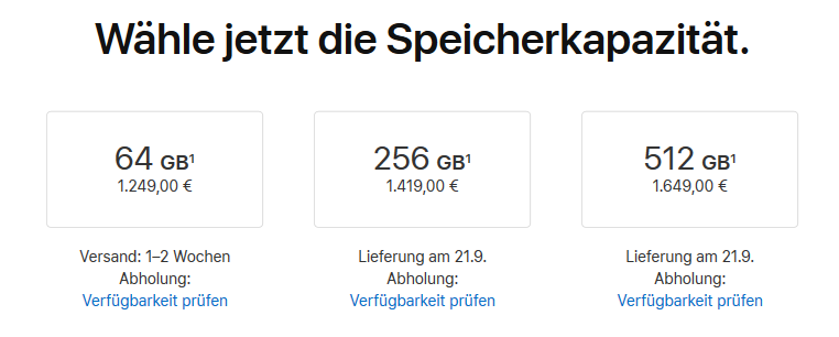 Die Lieferzeiten für das iPhone XS max am 15. September: