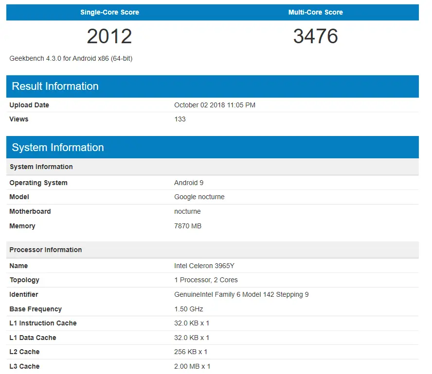 Die Modelle sollen dabei bisher unter dem Arbeitsnamen „Nocturne“ entwickelt worden sein und tatsächlich gibt es beispielsweise bereits bei Geekbench passende Leistungstests, die dazu passen könnten. Der Test spricht auch dafür, dass die Modelle wohl kurz vor dem Markteintritt stehen. Dazu verraten die Daten bei Geekbench einige weitere Details rund um die neuen Tablets. So wird das Google Pixel Slate wohl mit Android 9 auf den Markt kommen und dazu 8GB RAM besitzen. Für weitere Daten (vor allem rund um die Kamera) wird man wohl aber bis zur offiziellen Vorstellung warten müssen.