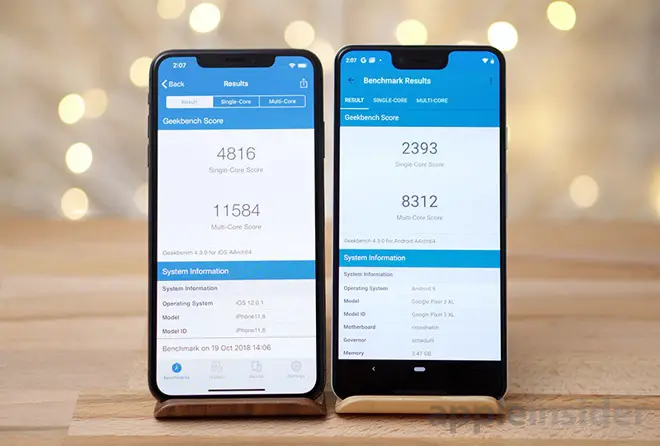 Bei PhoneBuff hat man die beiden größten Modelle von Samsung und Apple gegen einander antreten lassen und geschaut, wie die Smartphones sowohl beim Speed als auch bei der Akkuleistung abschneiden werden. Dazu gibt es mittlerweile auch erste Ergebnisse des neuen Pixel 3 im Vergleich mit dem iPhone XS max. Bei Appleinsider hat man die Modelle gegeneinander getestet und bei der Performance sieht das neuen Pixel 3 kaum Land. Sowohl im Single-Core als auch im Multicore Test liegen die Geräte deutlich (mehrere tauscend Punkte) auseinander:
