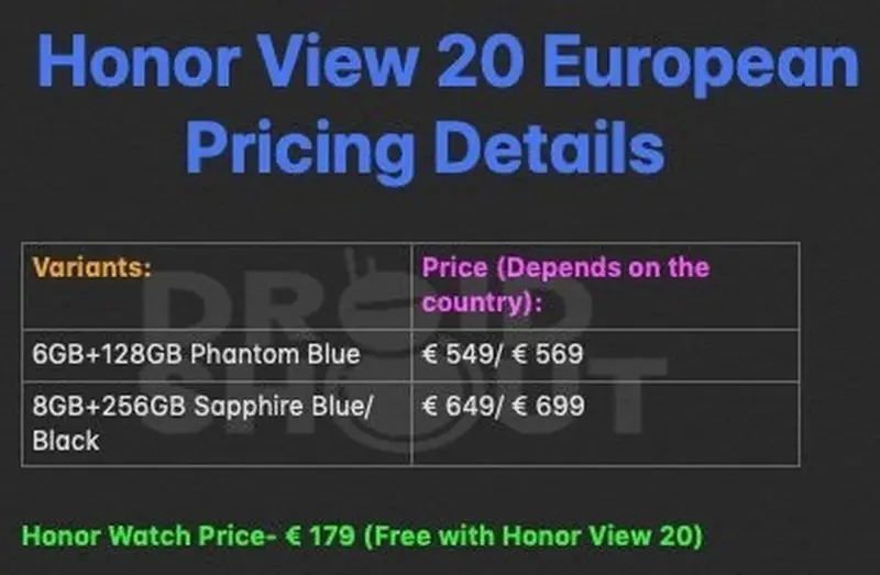 Bei Droidshout hat man bereits einen Blick auf die Preise des neuen Honor View 20 oder V20 werfen können und dabei soll es zwei Varianten geben: