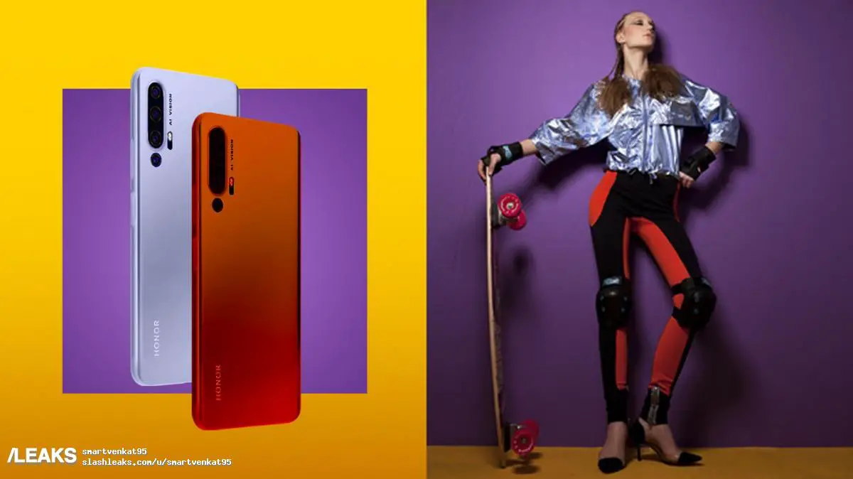 We just received an exclusive batch of promo images of the Honor 20 Pro and they all seem to confirm what we’ve seen so far except for one detail – the punch-hole camera. The previous leak had us believe that the punch-hole camera on the front is indeed happening but the images from today bring us back from where we started. The live images from the other week show off a camera hole positioned in the upper-left corner of the screen while the promo renders show no such thing.